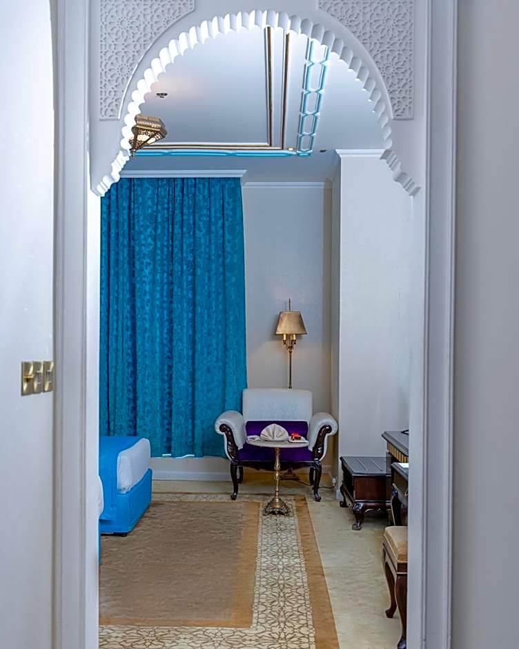 Suite Room is consists King Bed, Living Room, 52' TV with satellite channels, Free Wi-Fi, Tea /Coffee making facility, daily 2 bottles of mineral water, daily housekeeping cleaning service, safety deposit box, attached bathroom, mini bar and the size of the room is 50 square yard.
