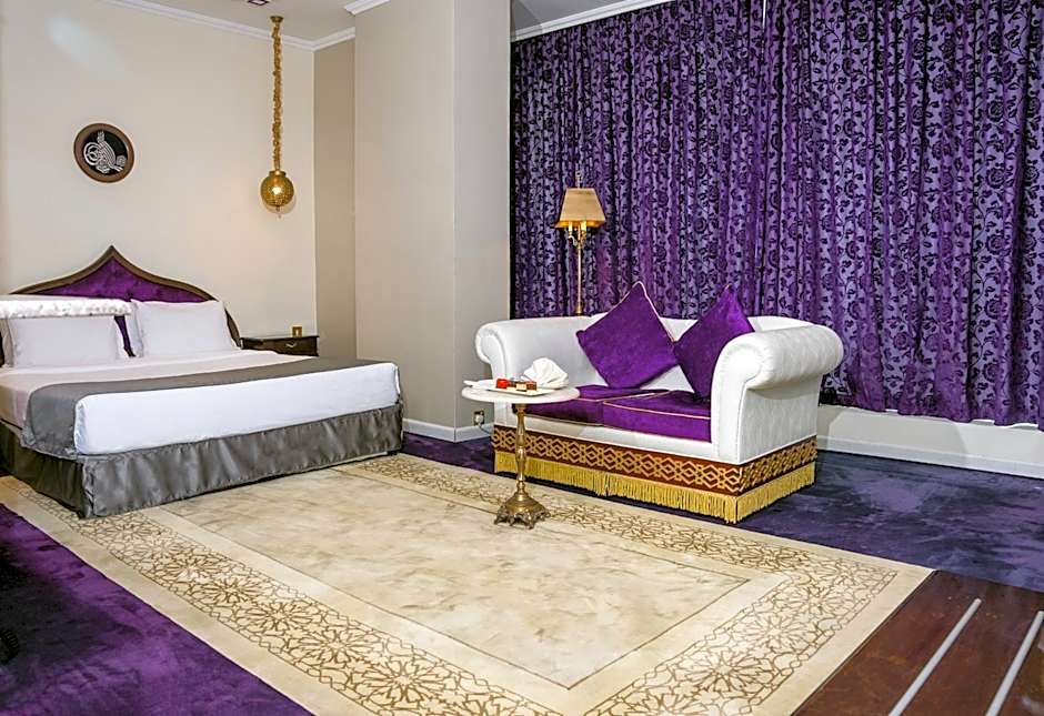 Suite Room is consists King Bed, Living Room, 52' TV with satellite channels, Free Wi-Fi, Tea /Coffee making facility, daily 2 bottles of mineral water, daily housekeeping cleaning service, safety deposit box, attached bathroom, mini bar and the size of the room is 50 square yard.